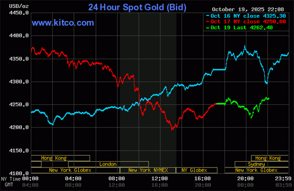 Giá vàng thế giới đứng ở ngưỡng hơn 4.262 USD/ounce, tăng trên 12 USD/ounce so với khi mở cửa phiên giao dịch.