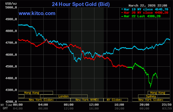 Tại thời điểm 9h15 (giờ Việt Nam), giá vàng giao ngay giảm 0,8% xuống 4414 USD/ounce, theo kitco, và giá vàng giao tháng 4 giảm 2,43% xuống 4.498 USD. Thị trường vàng chịu tổn thương nghiêm trọng về mặt kỹ thuật sau khi giá rơi xuống dưới đường trung bình động 50 ngày, nằm ngay dưới mốc 5.000 USD/ounce.